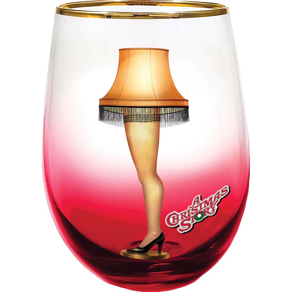This 20oz stemless wine glass features the iconic glowing leg lamp against a bold red ombré finish, topped with a stunning gold rim. It’s festive. It’s dramatic. It absolutely knows what it’s doing.